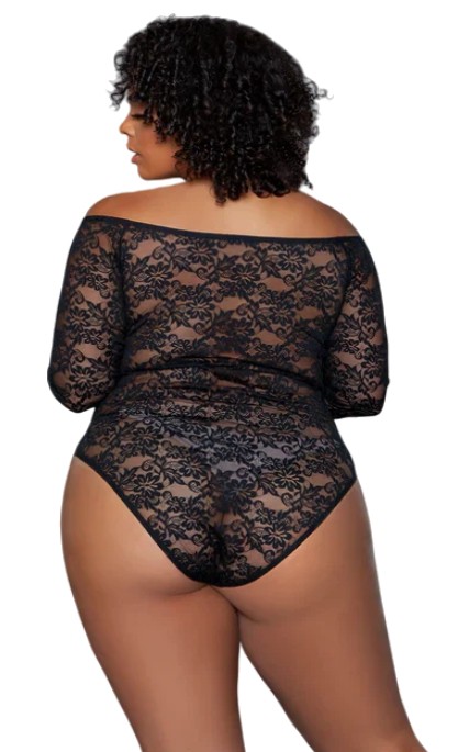 An off-shoulder floral lace bodysuit is a captivating piece of clothing that combines the allure of lace with a flattering off-shoulder design.