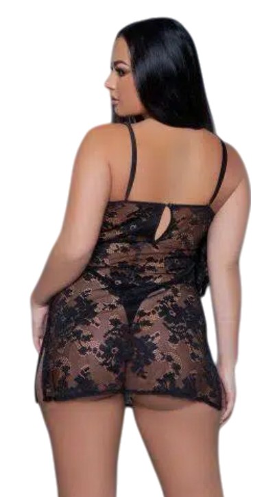 Luxurious floral lace chemise, designed to highlight the delicate beauty of lace with a floral pattern.