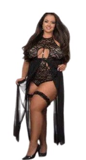 2pc Flyaway Slitted Long Dress Teddy With - Queen Size-Black 2pc Flyaway Slitted Long Dress Teddy With - Queen Size-Black
