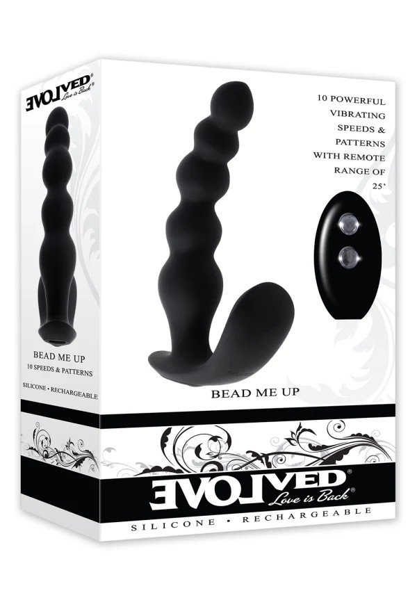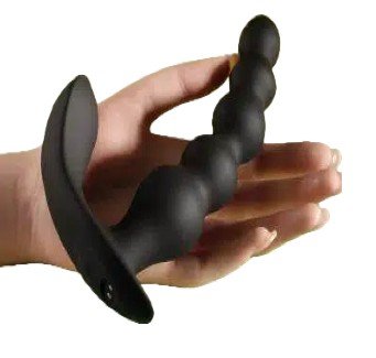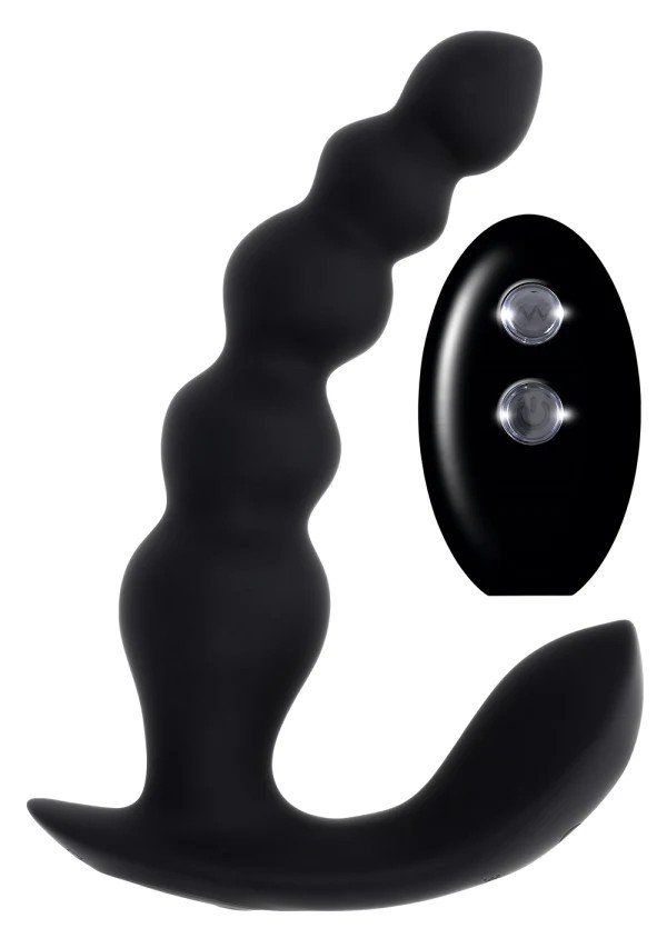 Bead me up, please! This flexible, curved, vibrating shaft features graduated beads that tease and titillate from small to large, tapering to a gentle tip at the point of entry.