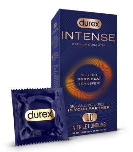 REVOLUTIONARY NON LATEX CONDOMS: Feel your partner like never before with all-new Durex Intense, the world's first nitrile male condom with better body heat transfer, offering a closer, more intimate connection - so all you feel is your partner.
