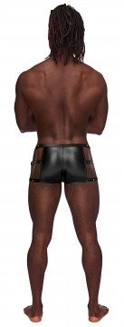This exotic style features a distinctive leather look stretch fabric, nickel plated studs and rings, full coverage pouch and rear with adjoining ring straps.