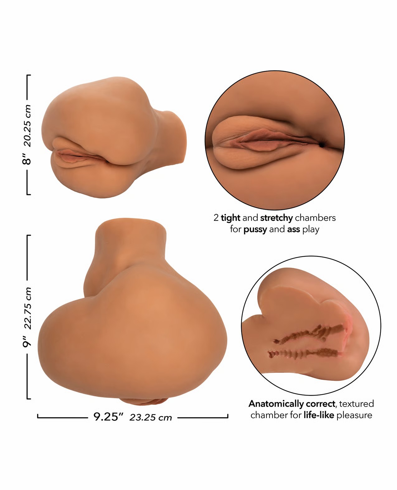 Realistic experience. The plushy-soft pink lips and tight ass provide an enticing entrance, while the 2 tight and stretchy anatomically correct textured chambers ensure intense stimulation with every stroke. The closed-end design enhances suction, delivering powerful sensations that will leave you craving more.